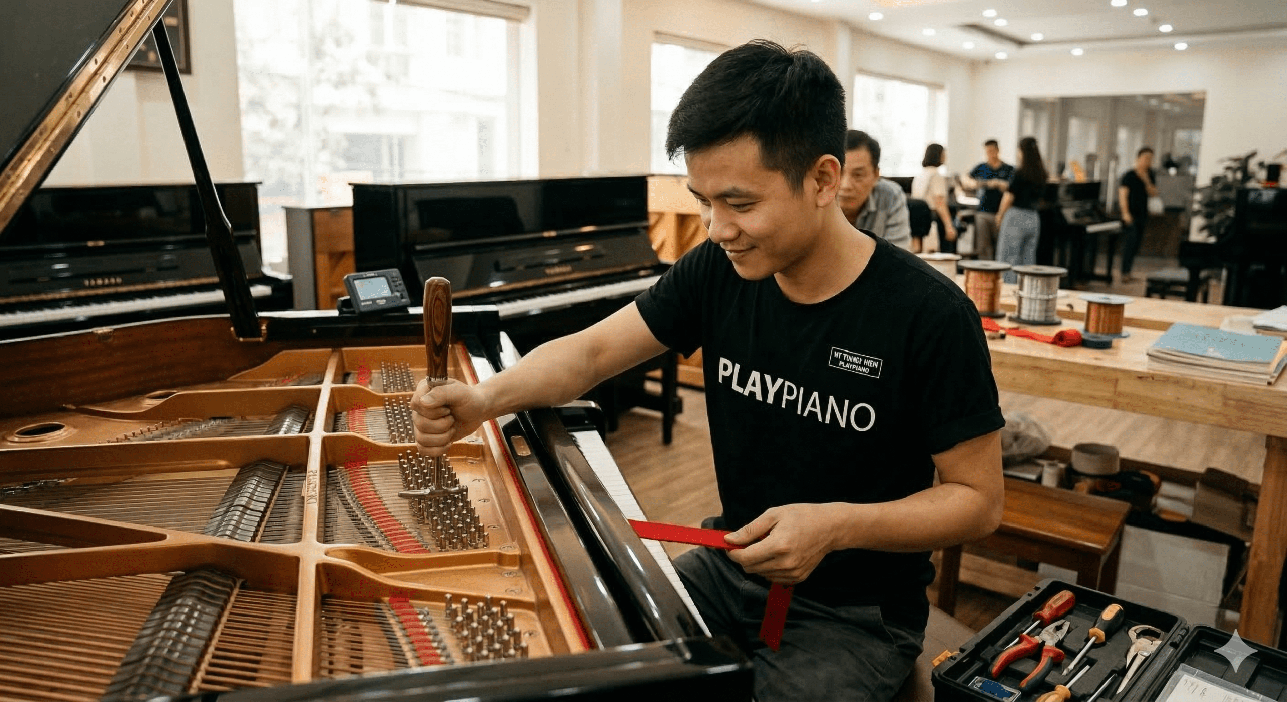 3.4. Lên dây đàn (Tuning): Cần lên dây định kỳ 6 tháng – 1 năm/lần để đảm bảo cao độ chuẩn xác.